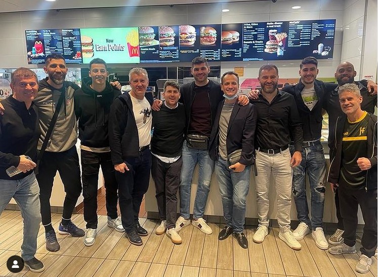 Hrgović je proslavio pobjedu u restoranu brze hrane, a tamo se našao i bivši predsjednik Hrvatskog nogometnog saveza Davor Šuker. Šuker se ne pojavljuje previše u javnosti, otkad je napustio mjesto čelnog čovjeka hrvatskog nogometa.