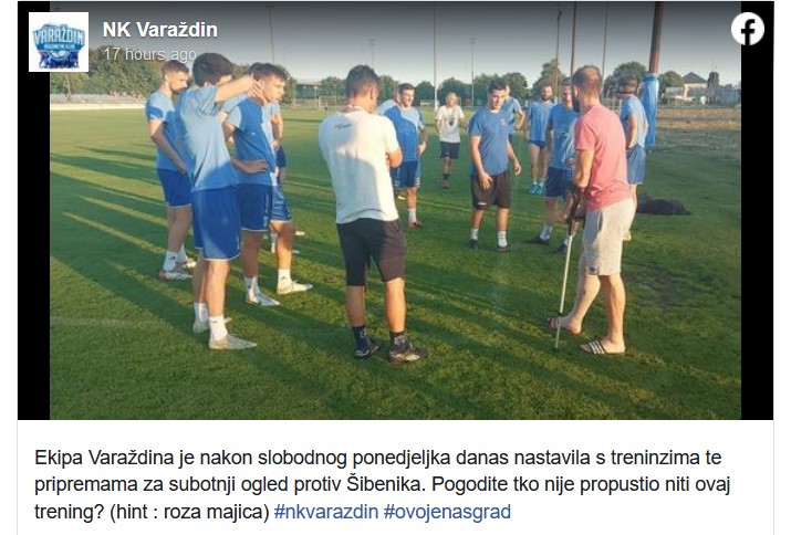 Ekipa Varaždina je nakon slobodnog ponedjeljka danas nastavila s treninzima te pripremama za subotnji ogled protiv Šibenika. Pogodite tko nije propustio niti ovaj trening? (hint : roza majica), objavio je klub na društvenim mrežama.