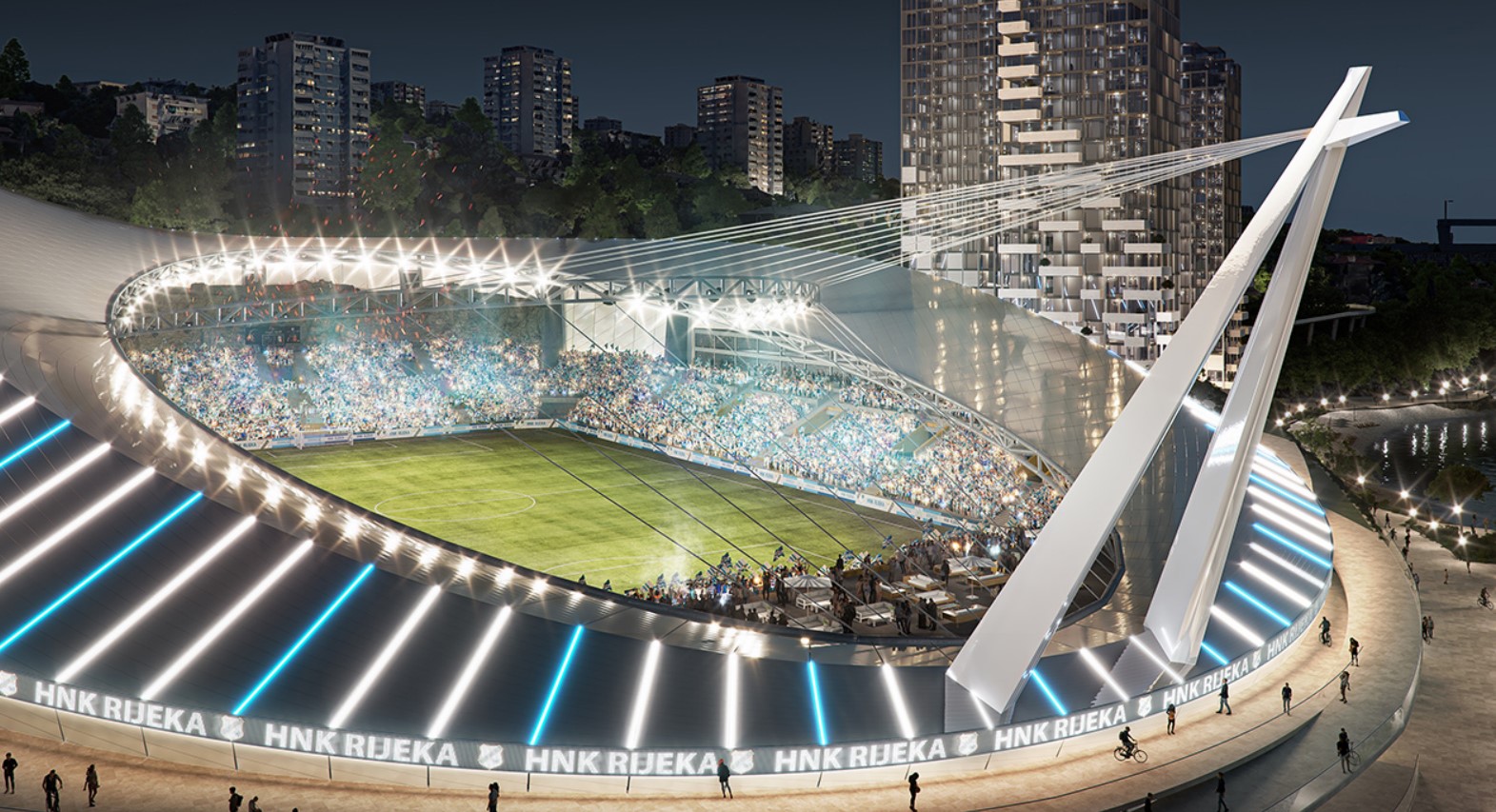 Konzorcij predlaže da izgradi kompleks te da stadion nakon toga prepusti u vlasništvo Grada Rijeke. Zauzvrat bi izgradio komercijalne sadržaje u vidu hotela na pet etaža s najmanje četiri zvjezdice i tri nebodera sa stanovima i apartmanima, kako bi projekt za investitora bio ekonomski održiv, rečeno je na predstavljanju. Predviđena je i gradnja garaže s 1350 mjesta. Stadion bi se okrenuo u smjeru sjever-jug, za 90 stupnjeva u odnosu na dosadašnji. Zadržala bi se vizura prepoznatljivih stijena, a na njemu bi se mogle odigravati utakmice do razine Lige prvaka i reprezentacije.