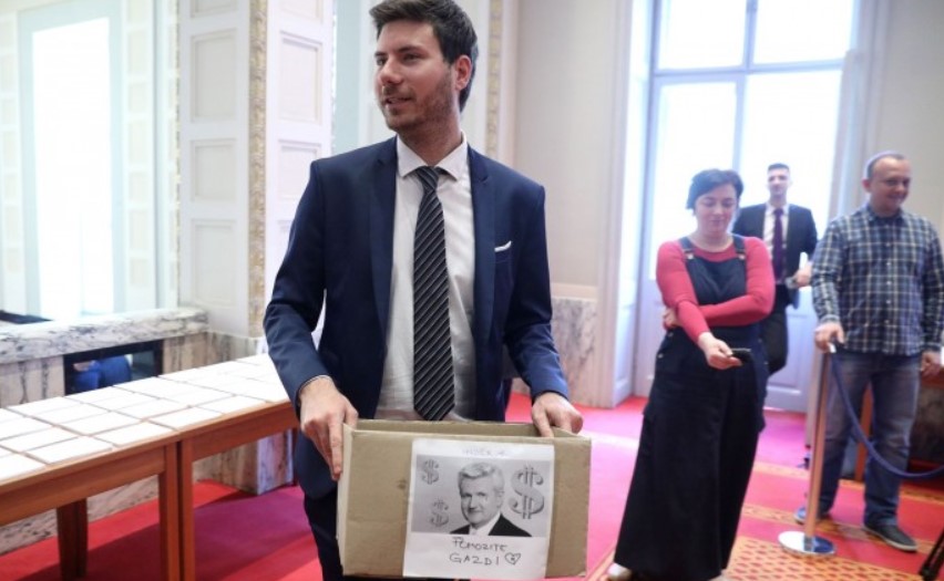 Na kraju saborskog zasjedanja u petak, zastupnik Živog Zida Ivan Pernar izveo je performans hodajući po saborskim hodnicima s kartonskom kutijom na kojoj je bila crno-bijela fotografija čelnika Agrokora Ivice Todorića i poruka “Pomozite Gazdi”.