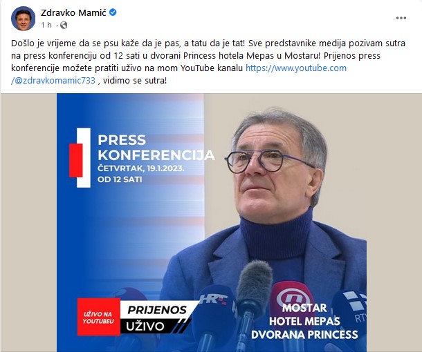 Uostalom, najava to i potvrđuje:” Došlo je vrijeme da se psu kaže da je pas, a tatu da je tat”, stoji u Mamićevom pozivu na pressicu.