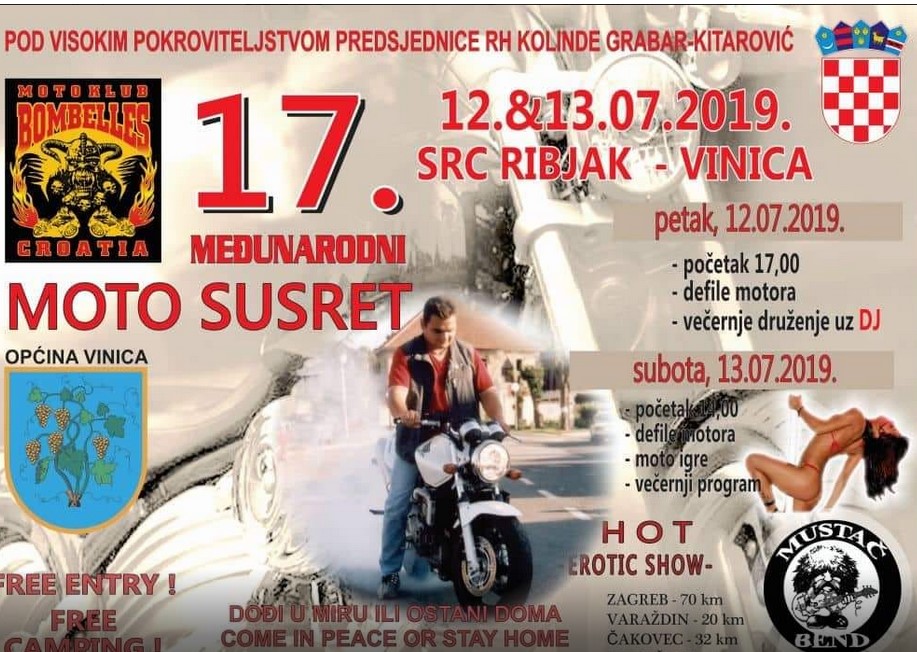 Moto klub Bombelles Vinica organizira 17. Međunarodni moto susret u Vinici, u Varaždinskoj županiji.