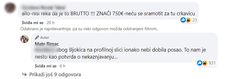 “Zbog šljokica na profilnoj slici ionako ne bi dobila posao. To nam je nešto kao potvrda o nekažnjavanju…”, odgovorio joj je Mate Rimac.