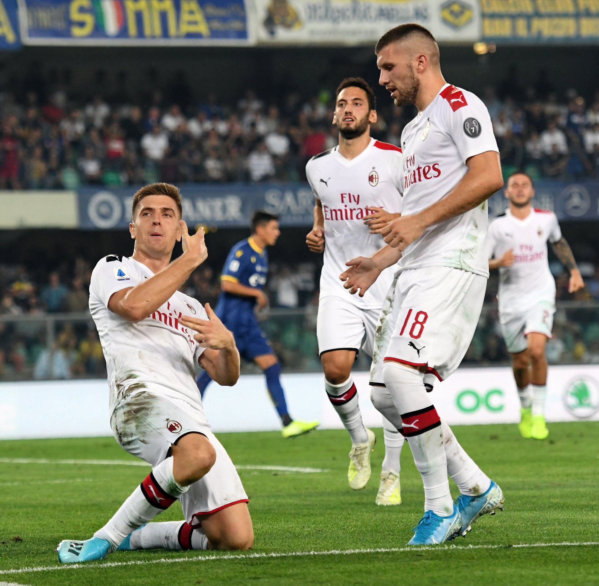 Trener Verone Ivan Jurić morao je rano promijeniti plan igre jer je njegov napadač Mariusz Stepinski dobio crveni karton u 21. minuti. Dugo su domaćini održavali nulu, ali u 68. minuti su pokleknuli kada je Krzysztof Piatek iz penala donio pobjedu Milanu. Hrvatski reprezentativac Ante Rebić, koji je u završnici prijelaznog roka stigao u AC Milan, debitirao je za “rossonere” odigravši drugo poluvrijeme, te je zaradio žuti karton zbog jednog prekršaja.