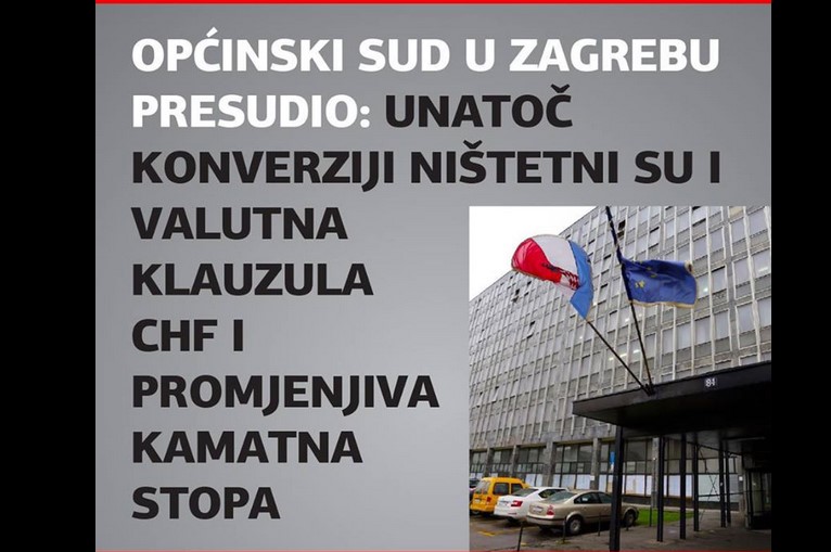 Sud je utvrdio kako je banka ugovorila s tužiteljem nepoštenu i zbog toga ništetnu valutnu klauzulu CHF, da je banka ugovorila s tužiteljem nepoštenu i zbog toga ništetnu odredbu o promjeni kamatne stope odlukom banke i da su odnosne ugovorne odredbe ništetne unatoč provedenoj konverziji CHF kredita.